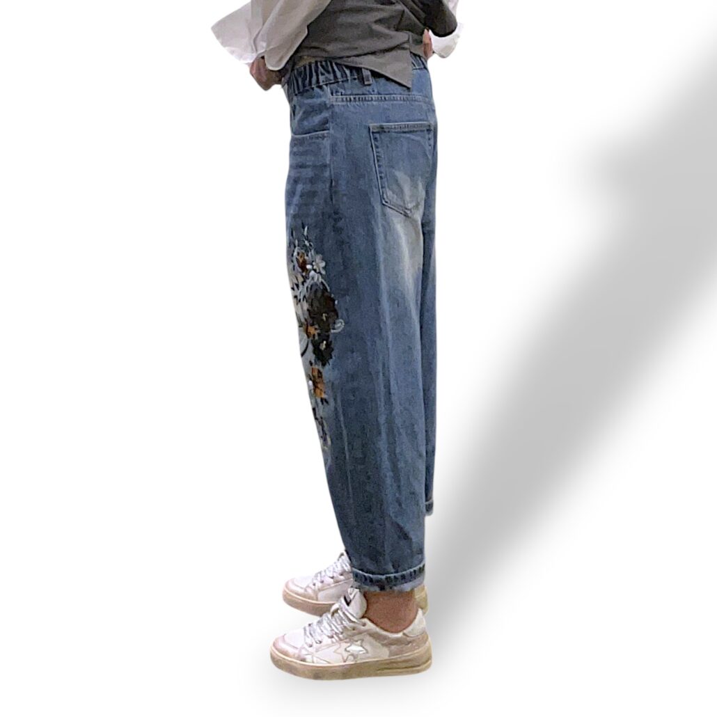Jeans baggy donna con ricamo