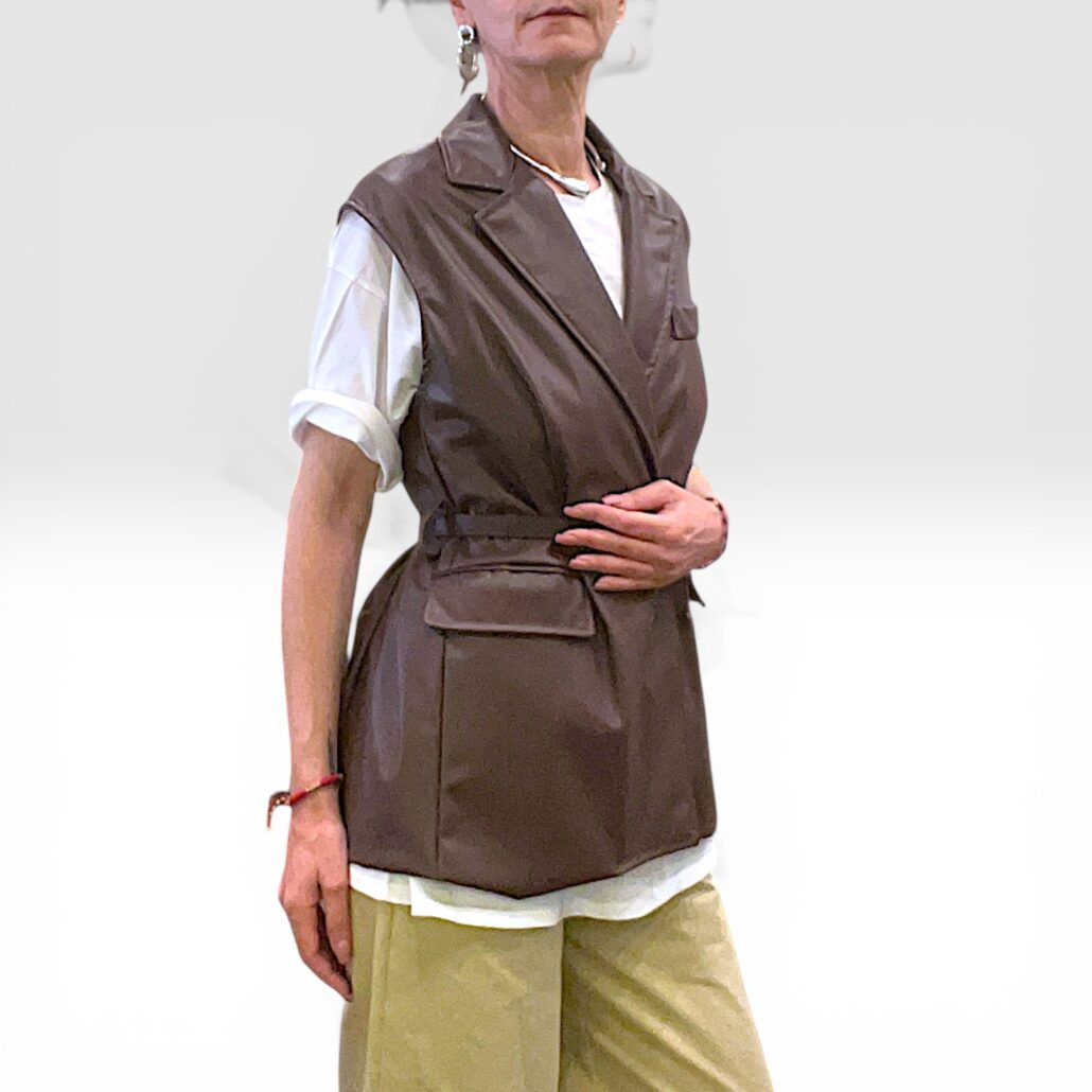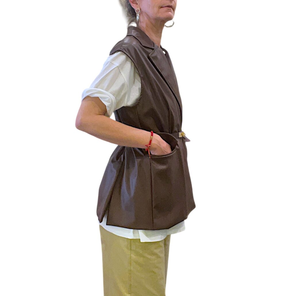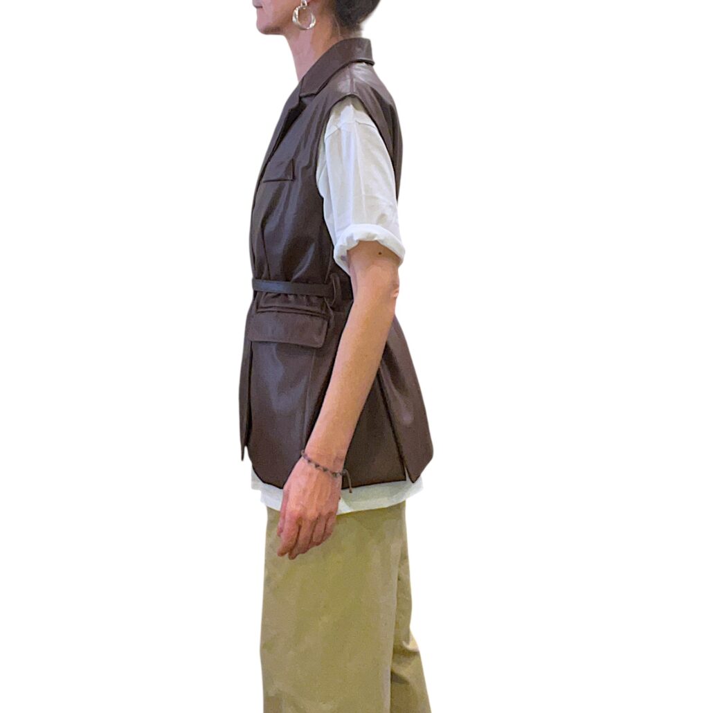 Recensisci per primo “Smanicata donna in similpelle marrone con cintura”