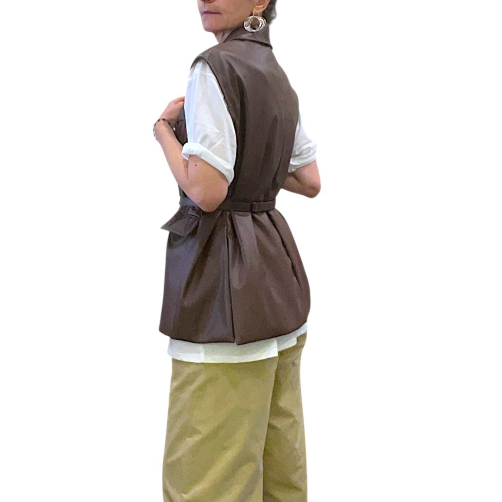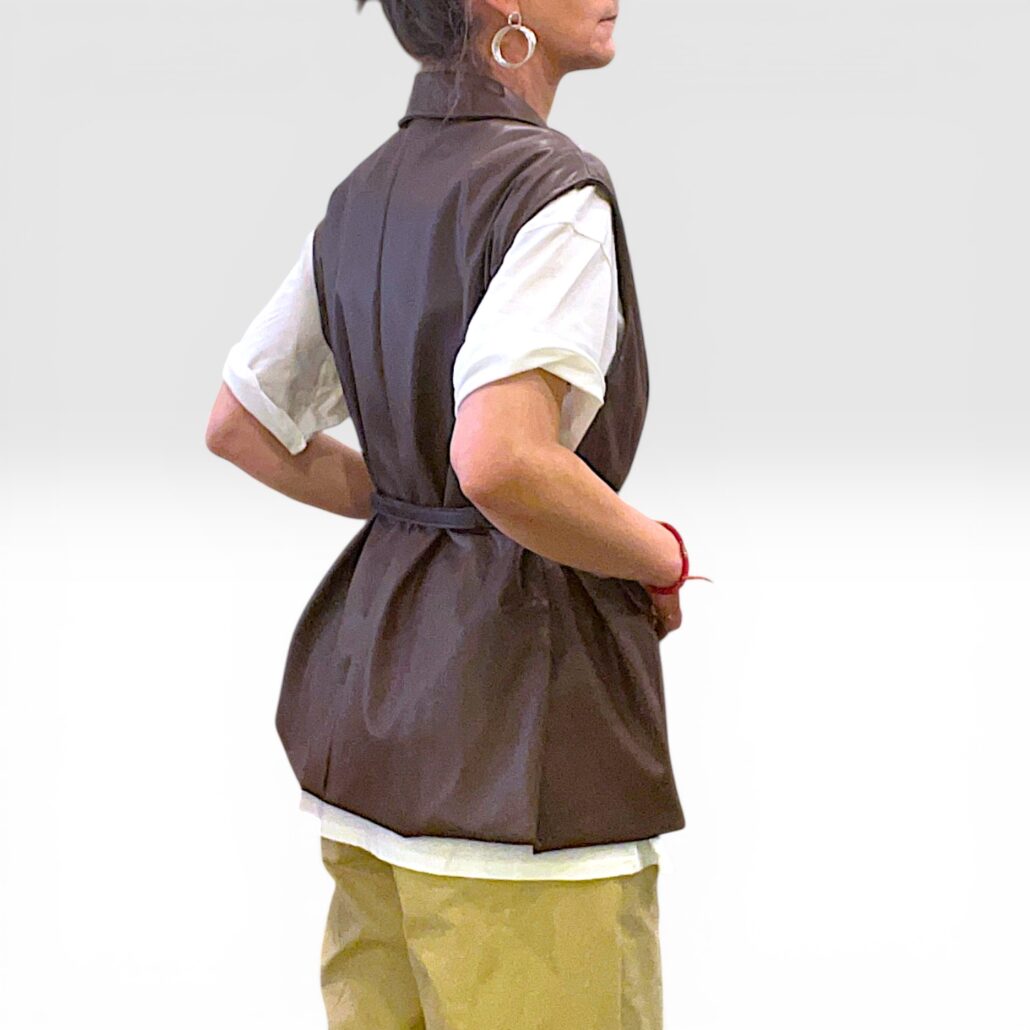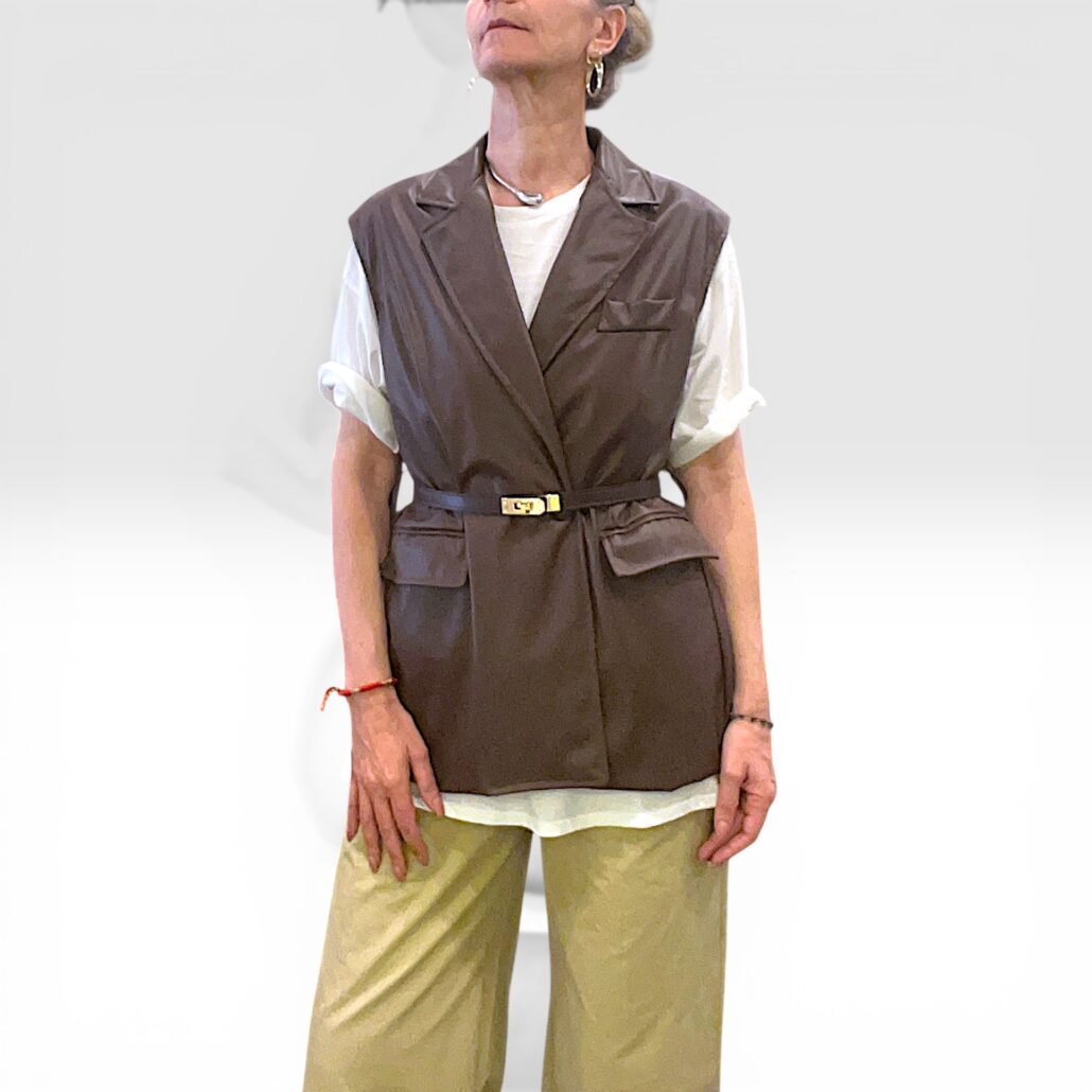 Recensisci per primo “Smanicata donna in similpelle marrone con cintura”