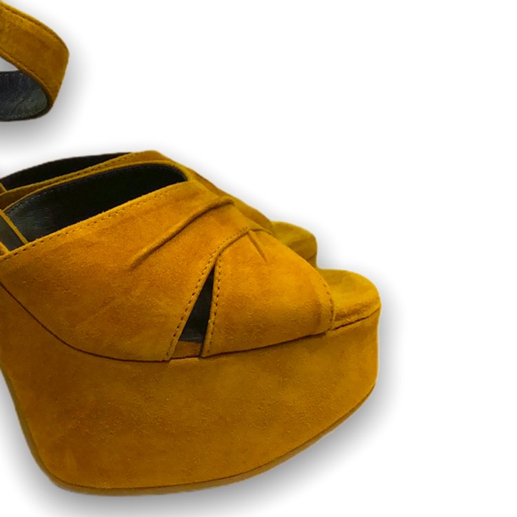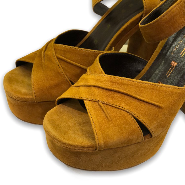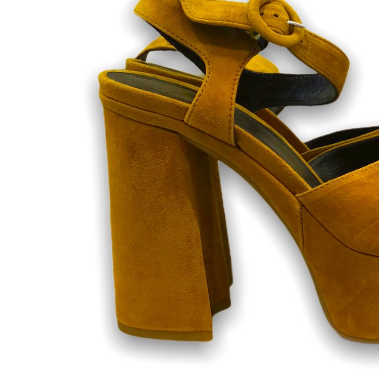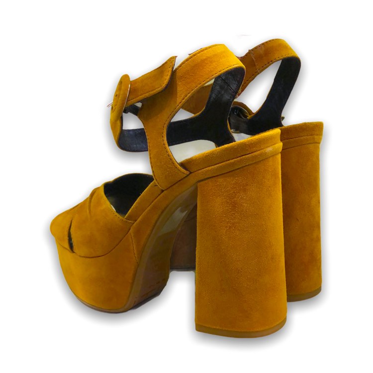 Tiffi, sandalo donna in camoscio, inserto elastico alla fibbia, fondo in gomma logata, tacco 12 cm, plateau 4 cm, prodotto made in Italy.